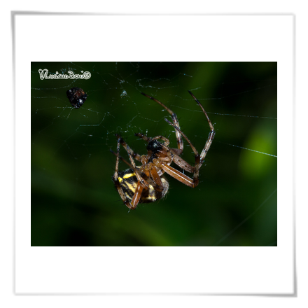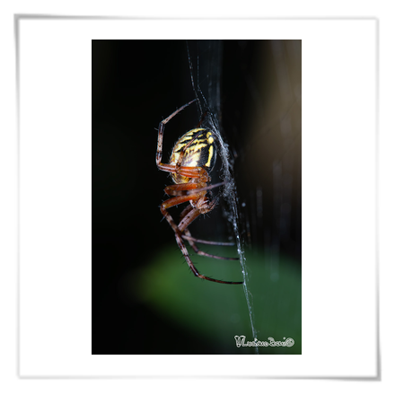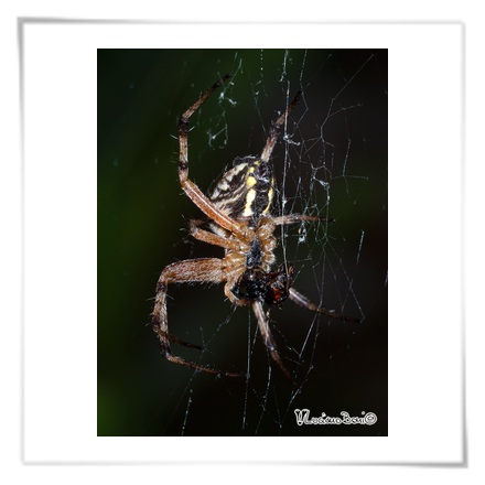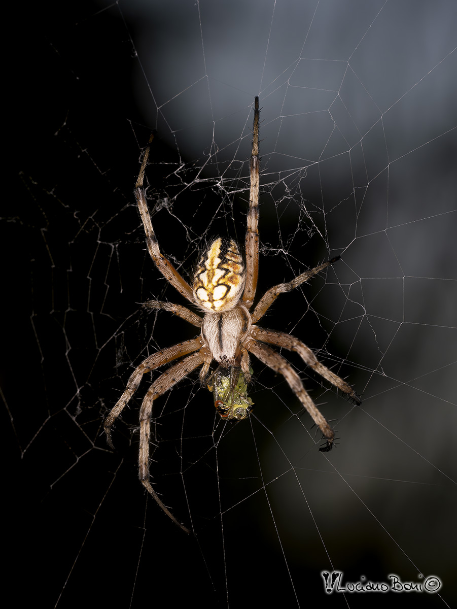 Di giorno il ragno può trovarsi al centro della tela o nel rifugio.