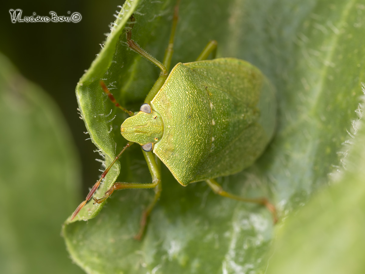 - Palomena prasina, se ne distingue per le callosità biancastre alla base dello scutello (assenti in P. prasina).