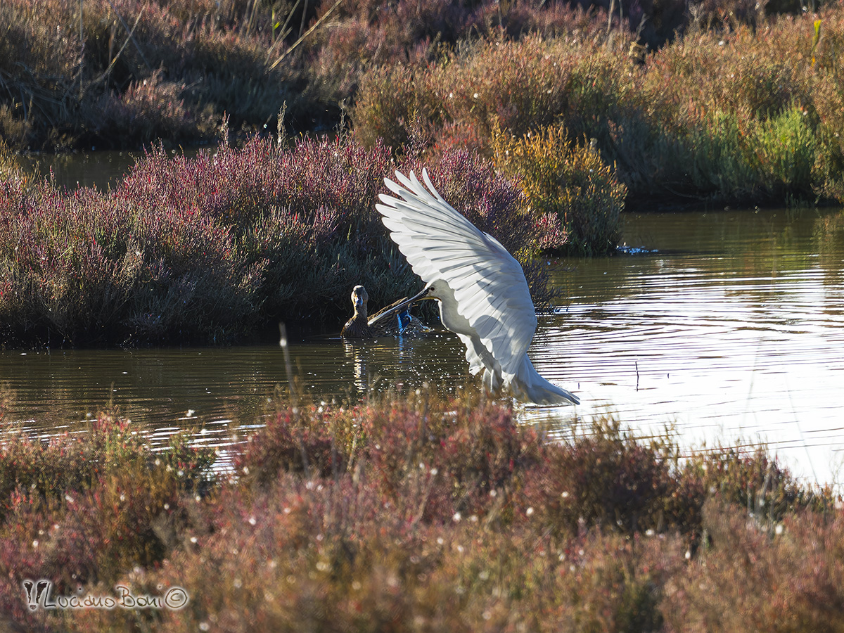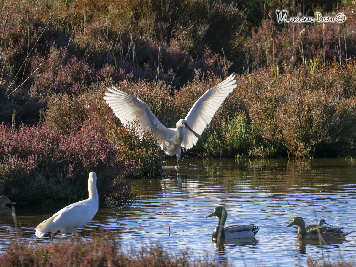 È facile confondere la spatola con un airone, specialmente con l'airone bianco maggiore, con cui ha in comune molti aspetti (dimensioni, habitat), ma basta guardare il becco per capire la specie avvistata: l'airone bianco maggiore ha il becco giallo a punta.